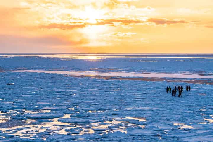 ولا يمكن ملاحظة الجليد الطافي في هوكايدو إلا على طول ساحل بحر أوخوتسك في الجزء الشمالي الشرقي من هوكايدو. وتُقدم المدن في هذه المنطقة أنشطة عديدة للاستمتاع بالجليد الطافي، مثل رحلات بالأحذية الثلجية، وخاصةً عند شروق وغروب الشمس عندما تتباين أشعة الشمس الأرجوانية مع الجليد الأبيض ليتشكل مشهد خيالي جميل