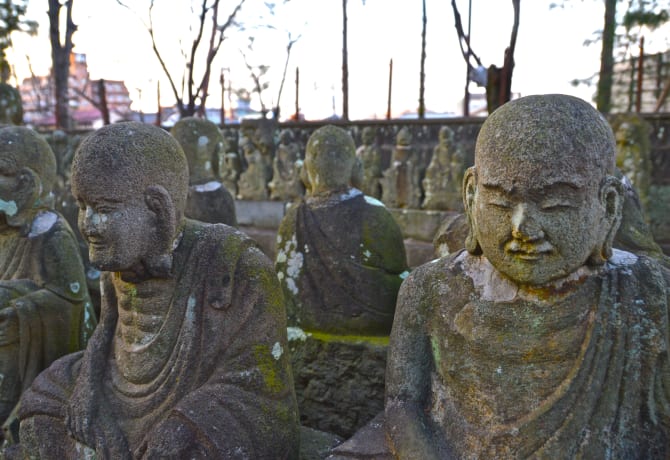 هناك معبد آخر يستحق الزيارة هو معبد كيتاين، وذلك لأنه يحتوي على آخر ما تبقى من أطلال قصور قلعة إيدو سابقًا، كما توجد فيه أيضًا تماثيل غوهياكو راكان الحجرية الشهيرة.