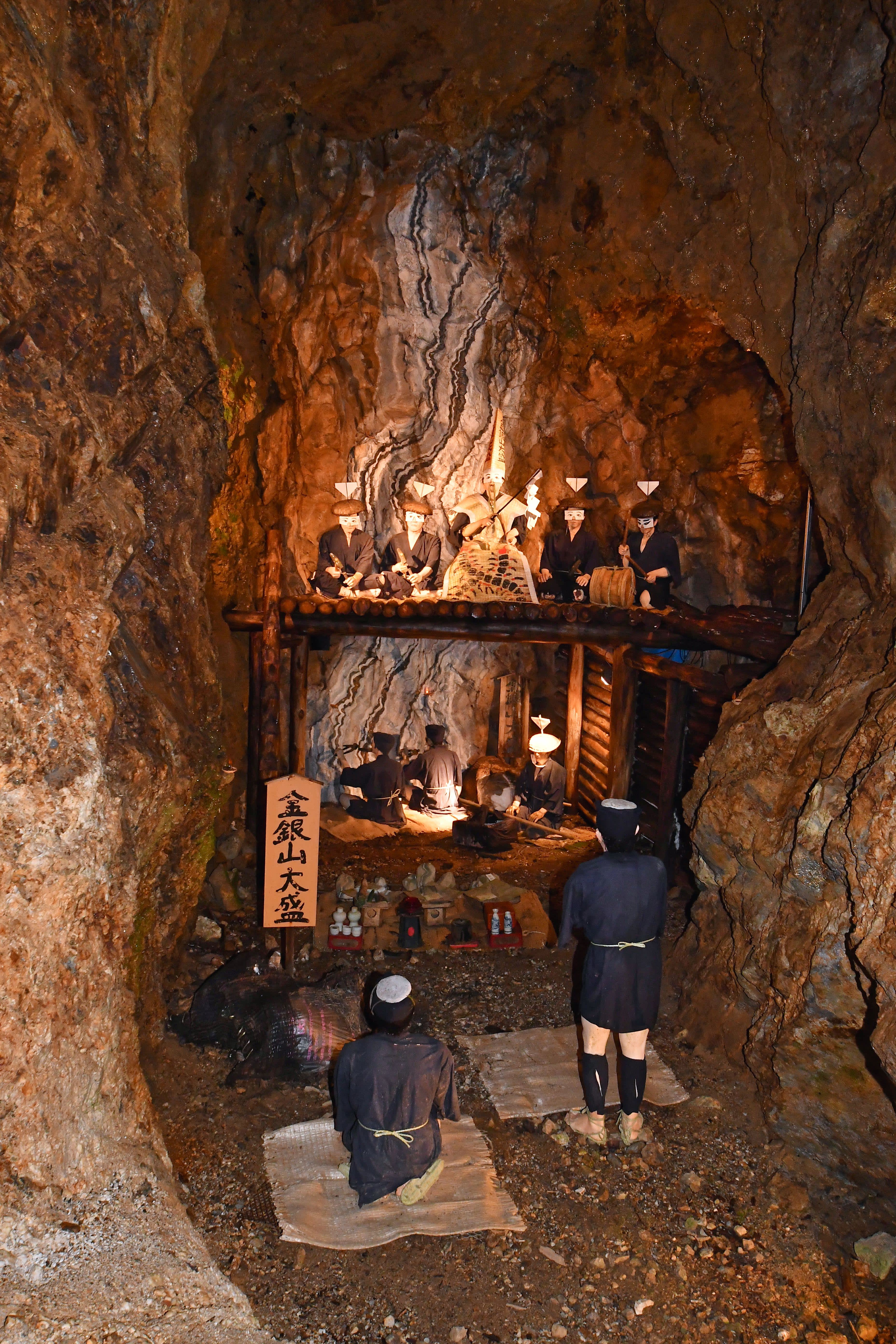 Man kann die historischen Stollen auf zwei Routen besichtigen. Der Sohdayu-Tunnel bietet einen 30-minütiger Parcours, der den Bergbau der Edo-Zeit (1603-1867) mit Puppen und Werkzeugen in den von Hand gegrabenen Stollen nachstellt. Der Dohyu-Stollen wurde in der Meiji-Ära (1868-1912) gegraben und bietet einen 40-minütige Parcours der an den Grubenwagen und dem Brecherhof vorbei führt, die aus dieser Zeit erhalten geblieben sind.