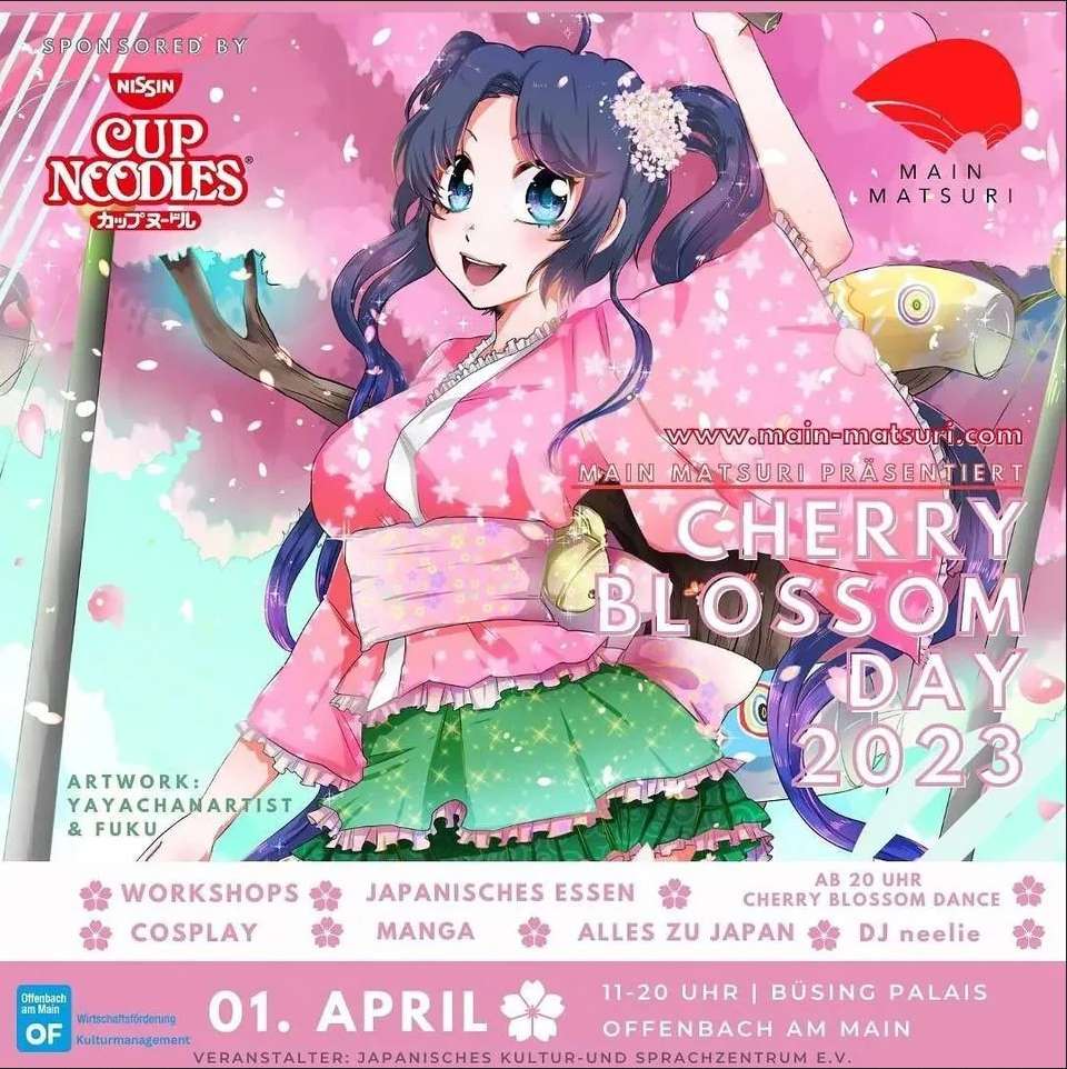 Die Organisatoren des Main Matsuri laden am 1. April ins Büsing-Palais in Offenbach ein, zu einem Japanfest ganz im Zeichen der japanischen Kirschblüte: In Anlehnung an das japanische Kirschblütenfest und die Hanami-Zeit in Japan, bei der in Japan mit vielen Festen und mit Picknick unter den Kirschblüten der Frühling eingeleitet wird, lädt der Cherry Blossom Day zu einem farbenfrohen Event für Freunde der japanischen Kultur ein.