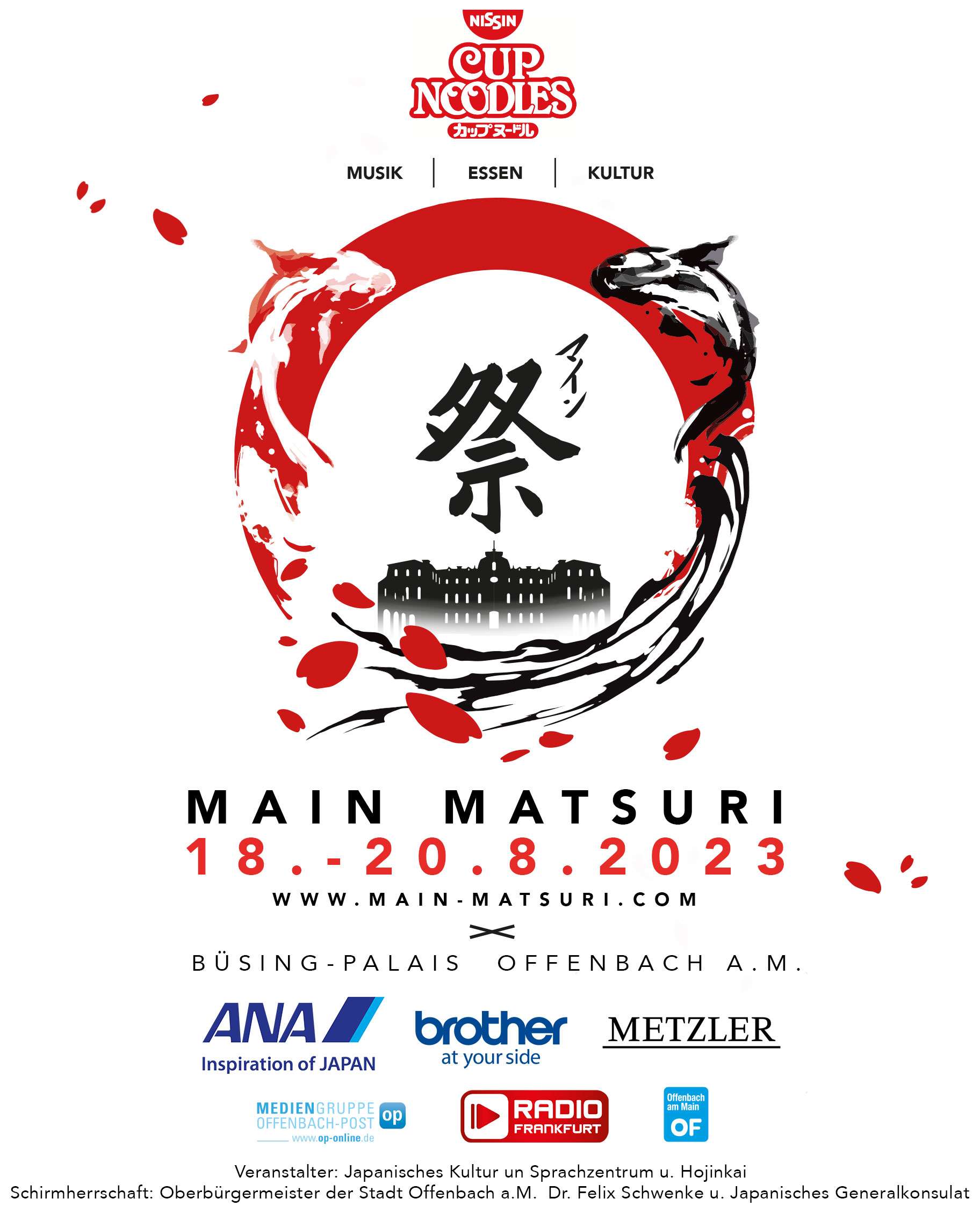 Vom 18.08. bis zum 20.08.2023 verwandeln die Organisatoren des Main Matsuri das Büsing-Palais in ein japanisches Sommerfest, eben ein richtiges „Matsuri“, mit einem mitreißenden Bühnenprogramm, leckerem japanischen Essen, Ständen zum Stöbern und vielem mehr. Im Mittelpunkt stehen dabei Vielfalt, tolle Unterhaltung auf hohem Niveau und ein reibungsloser, sicherer Ablauf für alle Besucher:innen, Aussteller:innen und Künstler:innen.