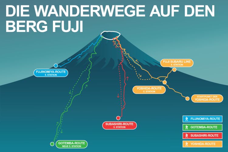 Die Wanderwege auf den Berg Fuji