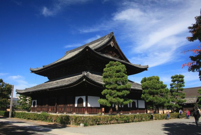 Ganz in der Nähe der pulsierenden Hanamikoji- und Shijo-Straße liegen die weitläufigen Anlagen des Kenninji-Tempels mit zwei Karesansui (trockenen Landschaftsgärten), die als stille Oase zu Spaziergängen einladen. Er gilt als der älteste Zen-Tempel in Kyoto.