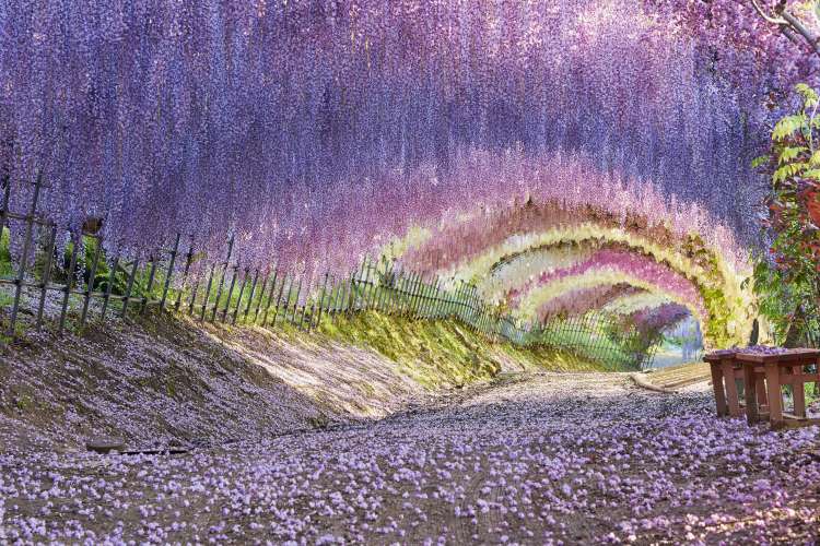 Partners Information: Kawachi Wisteria Garden in Kitakyushu, Fukuoka Prefecture, is where you will find one of the most amazing wisteria tunnels in the world. The garden has two wisteria tunnels (110 and 80 metres in length) featuring over 20 different varieties of wisteria that visitors can enjoy.
