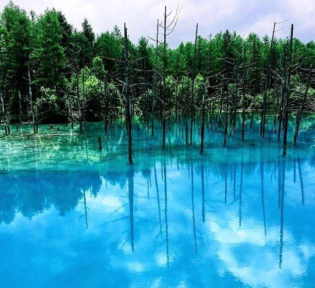 Located on the bank of the Biei River near the town of Biei on Hokkaido Island, you’ll have to pay a visit to the Blue Pond for a truly one-off and mysterious experience. Yes – as the name suggests, here you’ll find a vibrant blue pond with lifeless tree stumps protruding from the surface. All this, contrasted with the lush green backdrop of the surrounding forest (season depending), is breathtaking. But this is no natural phenomenon. Although there’s no exact known cause for the hue, which changes according to the season and even the time of day, the pond is said to have formed after a dam was constructed upstream to protect the region from mudflows from the nearby volcano on Mt. Tokachi.