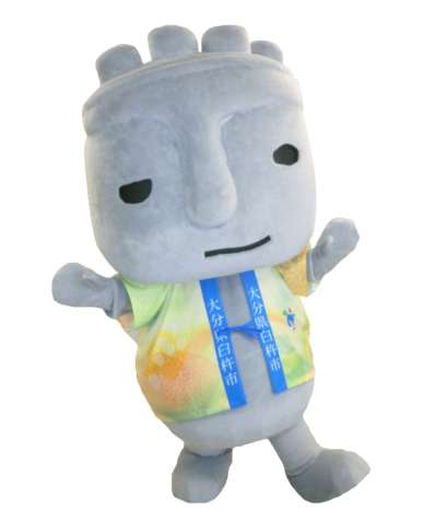 Hotto-san’s face of debatable motivation was inspired by the national treasure, the Usuki Stone Buddhas, located in his hometown of Usuki, Oita Prefecture. Hotto-san's name comes from both the Japanese word for the Buddha(hotoke)and the verb “to be relieved” (hotto-suru). His webpage lists his special skills as "sitting and bowing”, although as you may guess from his staggering appearance, he is not good at sports.