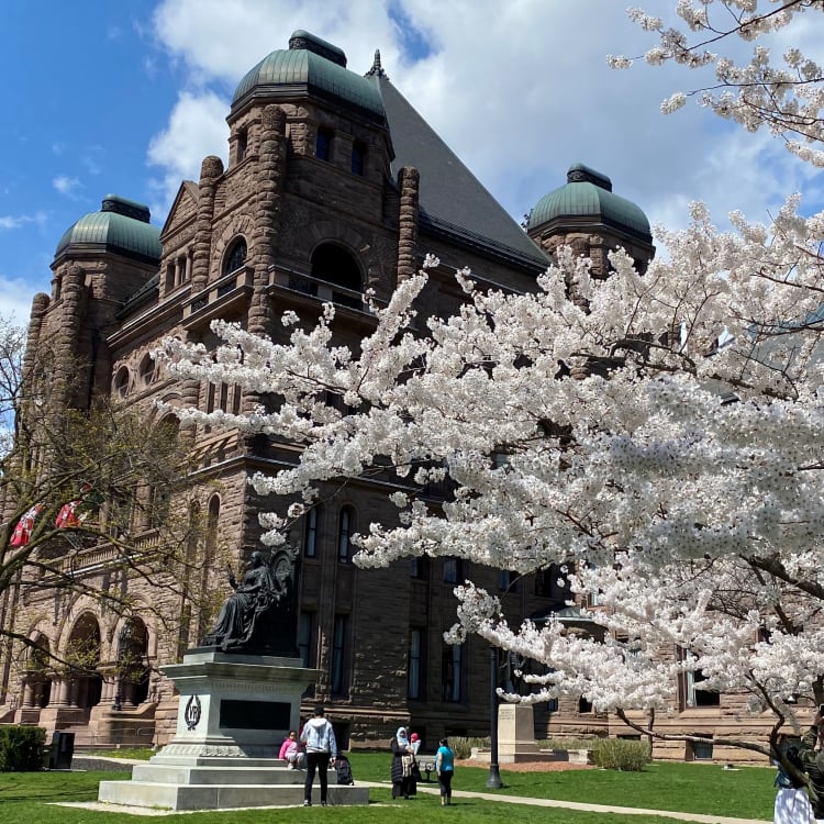 Many of the cherry blossom trees that can be found in Ontario were brought to Canada through The Consulate General of Japan in Toronto's “Sakura Project”. The project aimed to plant 3,000 cherry blossom trees throughout the province, and was in 2012, after exceeding their goal, having planted a total of 3,082 trees.
