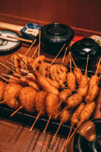 Gifuya Honke Restaurant is located in Shinsekai area of Osaka and sepcializes in deep fried skewers, or kushikatsu. Make sure to come with a big group of friends so you can get an assorted platter so share!