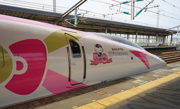 Japan’s rail network also has a pink and white shinkansen themed around Hello Kitty. This special JR bullet train runs from Shin-Osaka to Hakata and includes stops in Kobe, Okayama, and Hiroshima. Guests can pose with statues of the cat (dressed as a train conductor), watch cartoons, and shop for regional foods as they ride the rails.