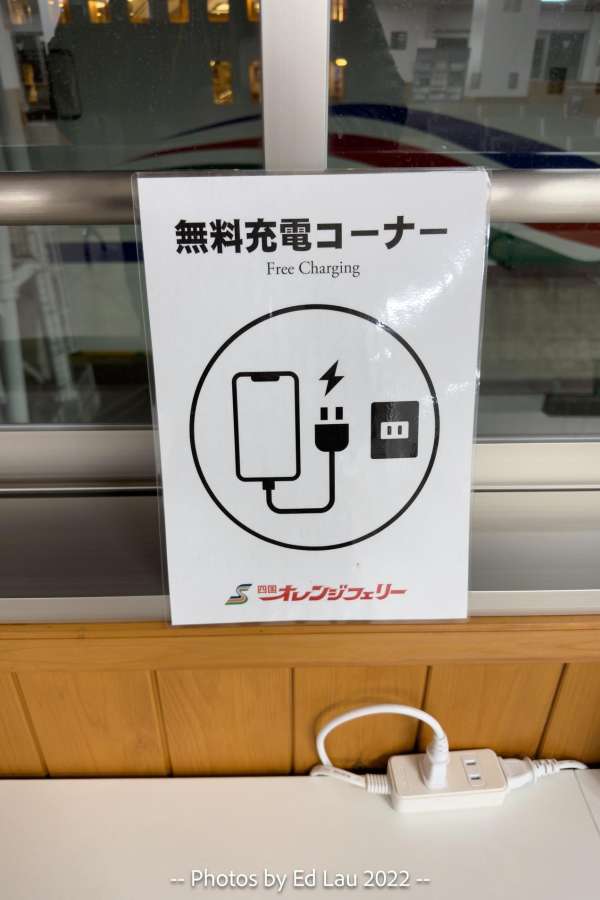 When I had arrived at the ferry terminal, it was still a bit early to check in, so I dropped my stuff off in the departure lounge, wandered around, and took some photos of the area before returning. While I waited for the ticket office to open, I spent a lot of time editing photos and writing about my travels so far for my blog as there were electrical outlets at the window seating area. I had no issues charging my Canadian cell phone or laptop in the departure lounge.