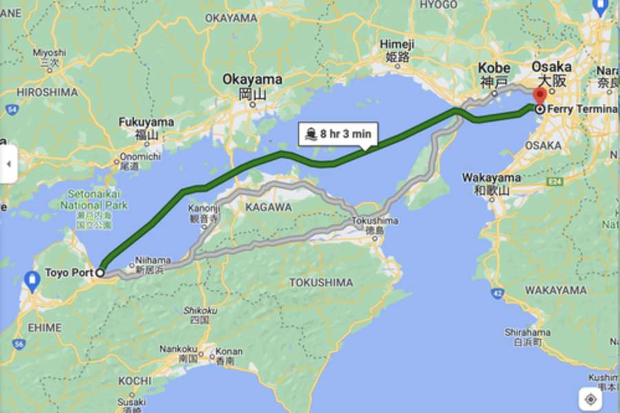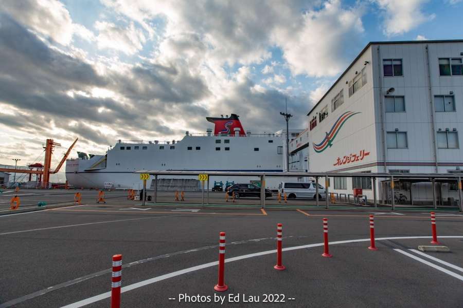 Orange Ferry's Kansai route only travels between Ehime and Osaka and leaves at 10 pm with boarding beginning at 8 pm. The ferry arrives in Osaka at 6 am the next day. As a result, it is similar to an overnight coach bus or train, but on water.