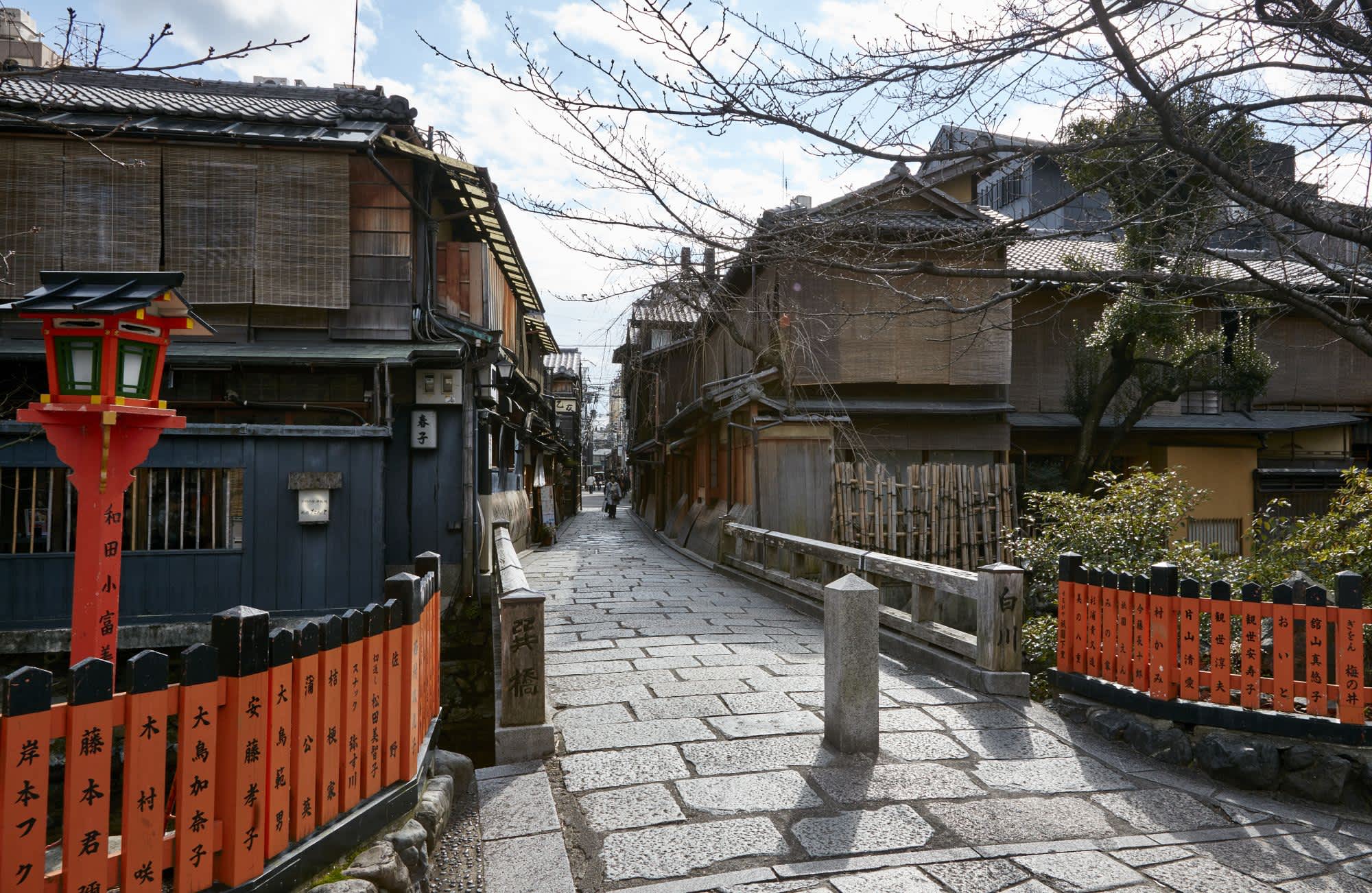 Östlich des Flusses Kamogawa und an den Ostbergen gelegen, erwartet Japan Reisende das traditionelle Kyoto mit seinen malerischen Häusern, alten Straßen und historischen Tempeln. Will man auf der Japan Reise die Atmosphäre von Alt-Kyoto spüren, bietet es sich besonders an, in dieser Gegend in einem Ryokan, zu übernachten. Vor allem junge Paare schätzen es, am Abend durch die romantisch beleuchteten malerischen Gassen zu schlendern. Im Gion Viertel, Kyotos früherem Vergnügungsviertel mit seinen hölzernen Stadt- und Teehäusern aus der Edo-Zeit, begegnet einem mit etwas Glück auch die ein oder andere Maiko oder Geisha. Diese Gegend ist ideal für Familien und Gruppen auf der Japan Reise, denn hier können zahlreiche Machiyas, historische Stadthäuser aus Holz, angemietet werden. Diese sind meist mit viel Liebe zum Detail eingerichtet und bieten Gruppen neben ausreichend Platz eine unvergleichliche authentische Übernachtungserfahrung.