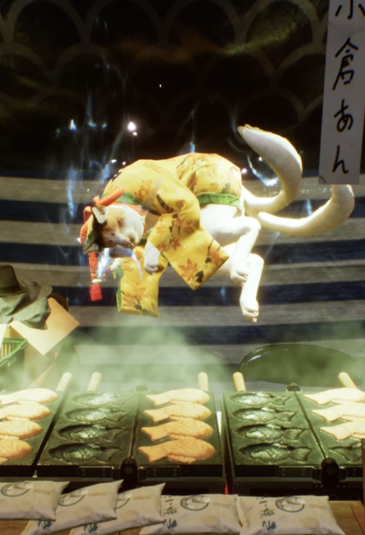 Zuletzt gibt es noch die traditionell japanische Variante einer Waffel, die Taiyaki. Das besondere hieran ist, dass das Waffeleisen so geformt ist, dass man eine Waffel in Form eines Fisches bekommt. Auch hier gibt es viele Variationen mit typisch japanischen süssen Füllungen. In Ghostwire: Tokyo kann man viele dieser Grill- und Waffelstände vor einem der großen Shinto-Schreine finden, allerdings gibt es im Spiel auch hier einen eher ungewöhnlichen Verkäufer..