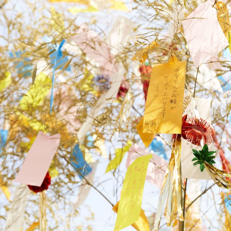Zum Sternenfest schmücken Lampions die Straßen der Innenstädte, und an frisch geschnittenen Bambussträuchern hängen viele kleine Zettel. In der japanischen Tanabata Tradition heißt es, dass Wünsche die man an diesem besonderen Tag aufschreibt und an den Bambusstrauch hängt, in Erfüllung gehen.