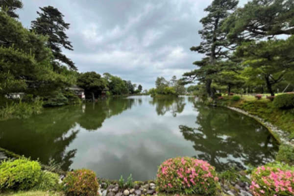 Kasumigaike Pond at the center of Kenrokuen Garden
