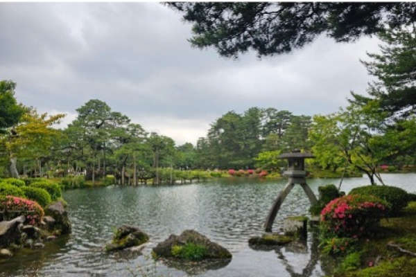 In the afternoon, I made my way to Kanazawa. Kenrokuen Garden, one of the Three Great Gardens of Japan, was even more serene than I expected. Winding paths led to ponds with koi fish, while sculpted pine trees stood like frozen dancers. Just across the street stood Kanazawa Castle, with white stone walls glowing in the afternoon sun. I lingered there, taking it all in.