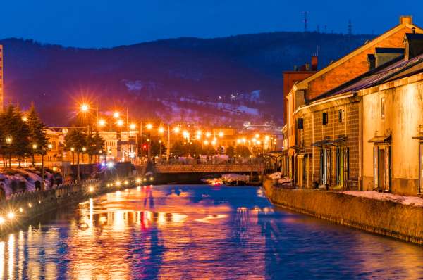 Otaru Canal—gas-lit at dusk, its 100-year-old warehouses glow with nostalgic charm.
