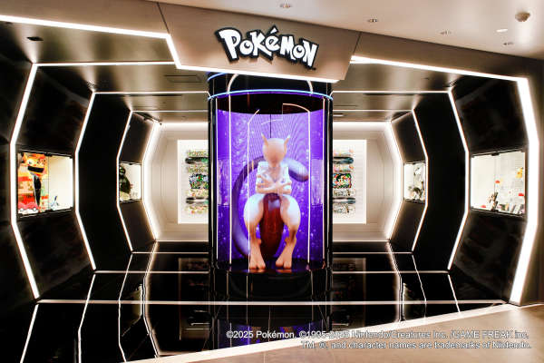 In this sleek Pokémon Center SHIBUYA, the legendary Mewtwo awaits.