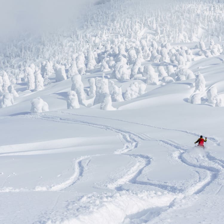 Outre ce paysage de givre et de glace, le Graal du ski en poudreuse doit sa réputation tant à la densité du manteau neigeux qu’à sa faible affluence, car la station reste réservée aux skieurs expérimentés. Un guide local est d’ailleurs recommandé.
