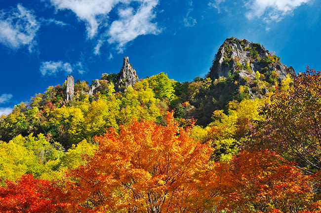 Part of the Daisetsuzan National Park in Hokkaido prefecture, the Sounkyo area comprises a range of gorges surrounded by 100-meter-high cliffs. The area is particularly beautiful in the fall season, with hiking tours available most of the year.