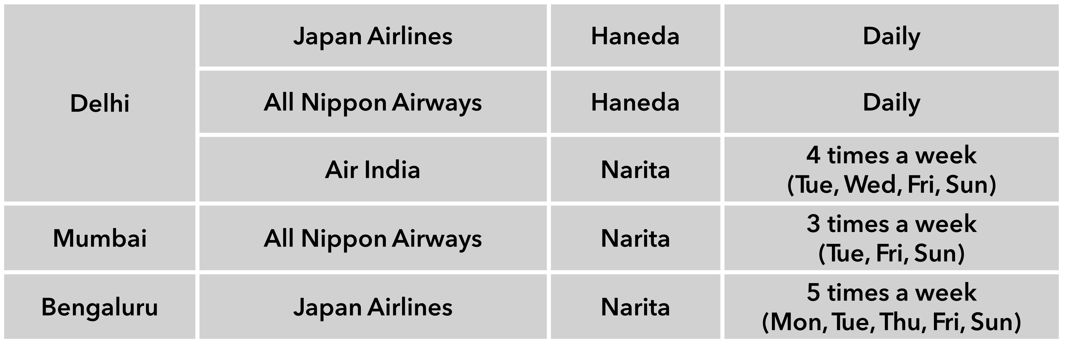 All direct flights to Japan from major cities in India are serviced by Haneda Airport and Narita airport. If you want to use other airports within Japan, you will have to transfer to these airports or choose connecting flights in other countries.