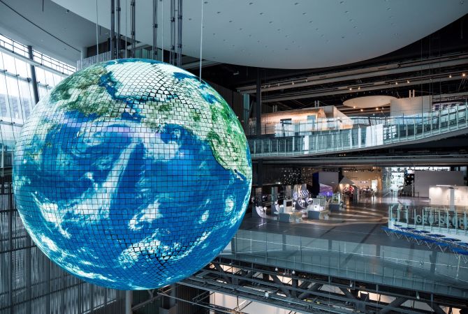 The National Museum of Emerging Science and Innovation, located in Odaiba, Tokyo, is a science museum where you can check out cutting-edge science and technology in a variety of fields including space, life sciences, and robotics. Some popular attractions include the Geo-Cosmos, which is a spherical screen on which images of the earth are reflected in real-time, the spectacular planetarium Dome Theater GAIA, on which five million stars can be projected, and an area where you can meet different kinds of androids.