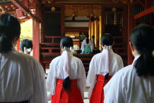 Kushida-jinja Shrine is dedicated to the god guarding the town of Hakata within Fukuoka City . The shrine is a hub for major festivals such as Hakata Gion Yamakasa . The area is also lively during Setsubun (late January to early February) and Hakata Dontaku (May 3-4).