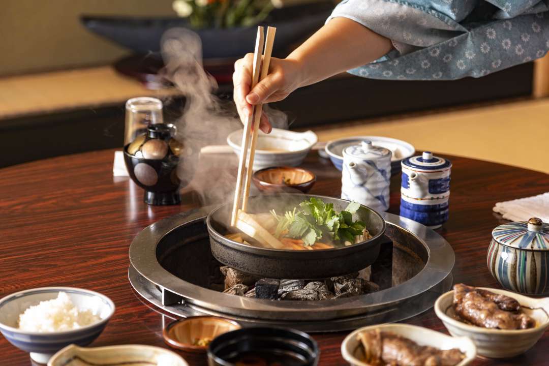 Dinner is a buffet celebrating the bounty of Mie. Delight in local specialties such as Matsusaka beef shabu-shabu prepared at the live cooking station, shell-on simmered abalone, Ise sea bream sashimi, and Ise tea croquettes. Afterward, unwind in the lounge with a glass of wine or a local beer in hand while enveloped in soft lighting—a tranquil moment that gently concludes a day of exploration and discovery.