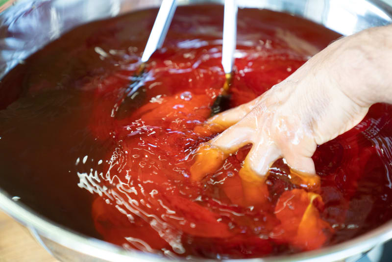 With the advent of chemical dies, the number of producers has dropped, but in western Tokushima you can participate in a natural akane dyeing workshop.