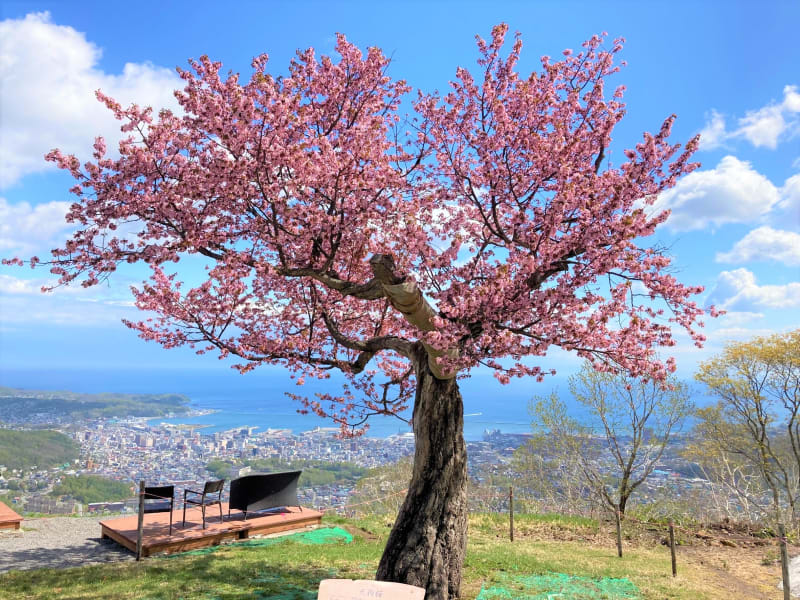Mount Tengu, reaching an altitude of 534 meters, is a scenic lookout point in Otaru City. It takes about 4 minutes by ropeway to reach the summit, where there is a cherry blossom tree, popularly known as Tengu Sakura.