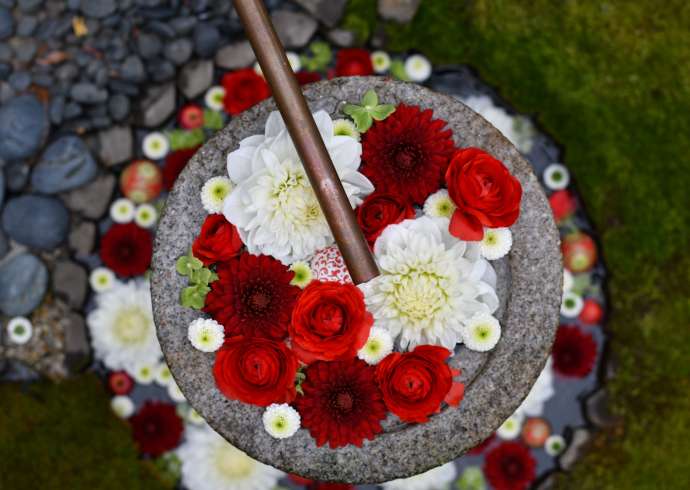 In spring 2020, Gyoda Hachiman Shrine, located about 1 hour and 30 minutes north of Tokyo, developed a new tradition of decorating its purifying fountains, known as “chozusha,” with colorful seasonal flowers. These artistic arrangements, named “hanachōzu,” were a healing response for worshippers during the pandemic and have become a popular sightseeing attraction in shrines around Japan in the wake of COVID-19.