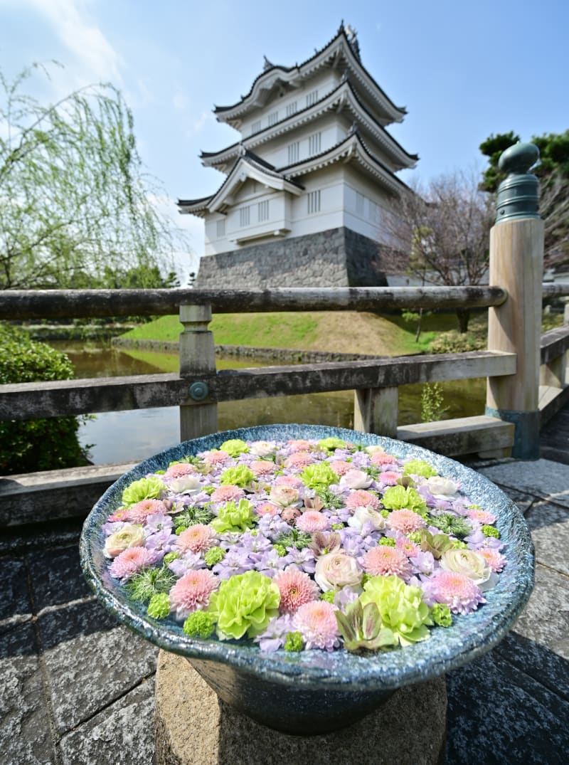 For those two weeks, around 100 sites throughout Gyoda are decorated with the unique floral displays in water known as “hanachozu”. Twice a year, the special days known as “Japanese Heritage x Hanachozu” and “Oshi Castle Flower Town” feature a full range of activities so you can enjoy not only the hanachozu flower displays, but also local sightseeing destinations and gourmet food and sake.