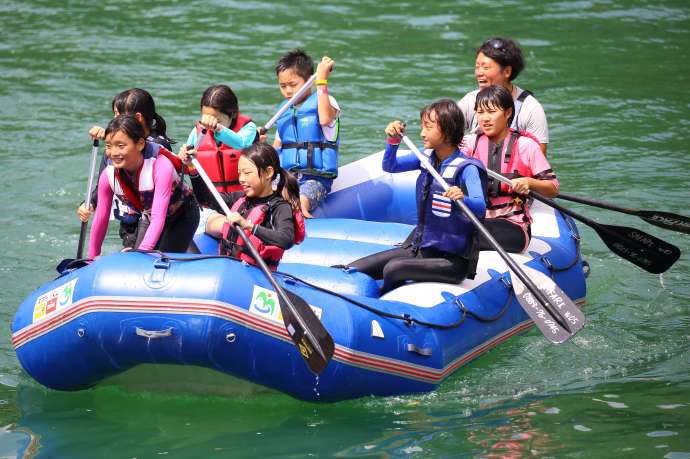 Opened in July 2022, Hessokko Water Sports Complex is a theme park located along the pristine waters of Lake Ikeda, an artificial lake created by the Ikeda Dam on the Yoshino River in Tokushima Prefecture. Here guests of all ages can enjoy over ten different types of outdoor activities, including SUP, canoeing, rafting, wakeboarding, and banana boating, surrounded by a lush landscape of mountains and forests.