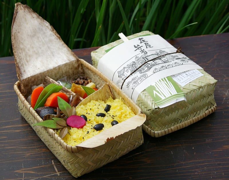 From the end of April to June, visitors can enjoy a bamboo leaf lunch box. The eye-catching meal features rice dyed yellow using gardenia, along with vegetables simmered in soy sauce and shoyu no mi (a salty mixture of dried vegetables, herbs, and fermented soy beans). Eat your seasonal lunch outside while enjoying the peaceful scenery.