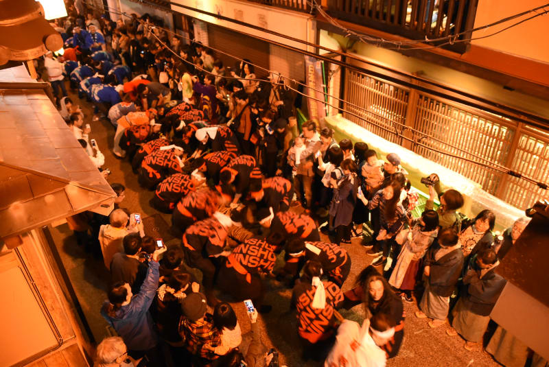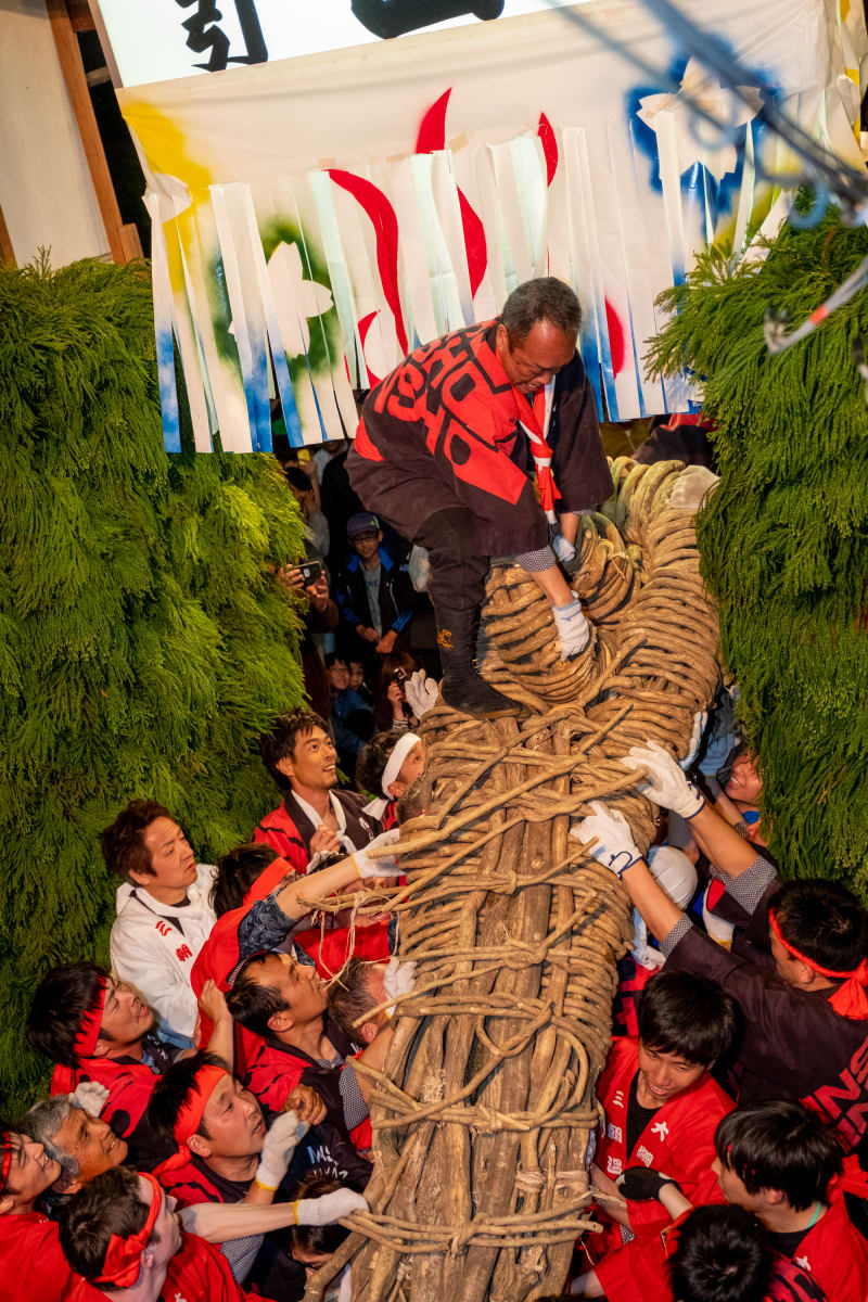 During the Hanayu Festival, locals make two giant ropes, each with a circumference of two meters and weighing two tons, using wisteria roots softened in the town’s river for a few days. The tug-of-war takes place inside the onsen district, where the East Team and the West Team confront each other. Anyone is welcome to take part once the two ropes are tied together. It is said that if the East Team wins, the harvest will be good, and if the West Team wins, commerce will prosper.