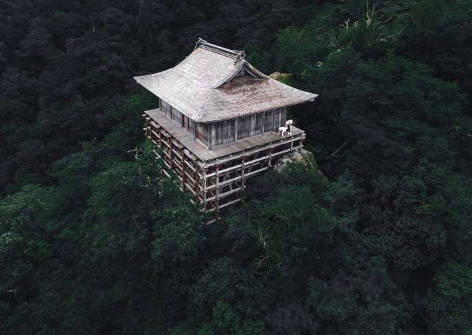The precise date of Nageiredo’s construction is unknown, but legend has it that the structure was built from the ground up through the spiritual power of the monk En no Gyoja, the founder of religious mountain training known as shugendo. Mt. Mitoku was a place for monks to practice shugendo. The rocky and slippery mountain path to reach Nageiredo is narrow in parts and has chains to help climbers over the trickiest sections. This challenging approach is why the temple is called one of Japan’s more dangerous national treasures.