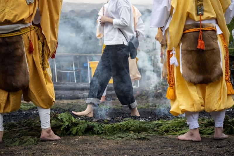 There are many unusual elements in the ceremony, such as shooting an arrow near the audience that is said to bring luck to whoever picks it up. After the fire dies down, the monks gather the ashes and pound them down into a pathway of embers that people can walk across, holding paper charms and praying as they walk.
