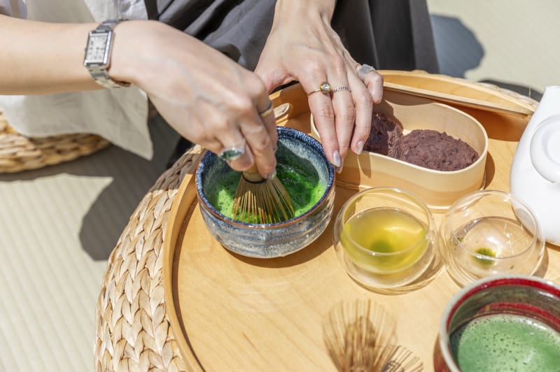The organic tea served changes seasonally, with guests being served two varieties from among single-origin green tea (sencha), Japanese black tea (kocha), and matcha, along with carefully selected traditional sweets.