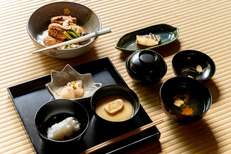Here, you will have the rare opportunity to experience this unique reflection of Japanese culture in a feast of the senses: listening to the sound of water droplets in stone basins resonating in the traditional garden Roji and smelling the incense wafting through the 300-year-old Yosazura-en tea room—decorated with tea scrolls and an array of ancient utensils waiting to be viewed.