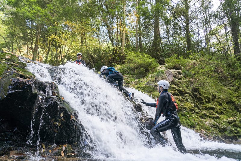 On this river trek, you’ll be carried along by the Minochi River, floating on the water or clinging to a rockface as you climb a waterfall. Climbing up Mt. Omine, you’ll walk on soft ground and weave your way through vegetation to reach the summit. It’s an adventure that will make you feel one with the eEarth.