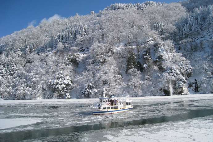The Shogawa River in western Toyama Prefecture has been used since the Edo Period (the 16th century) as a water transportation system for transporting cut timber downstream from the mountainous Gokayama and Hida areas. Today, visitors can enjoy its beauty and the changing seasons on a pleasure boat that connects Komaki Dam and Omaki Onsen.
