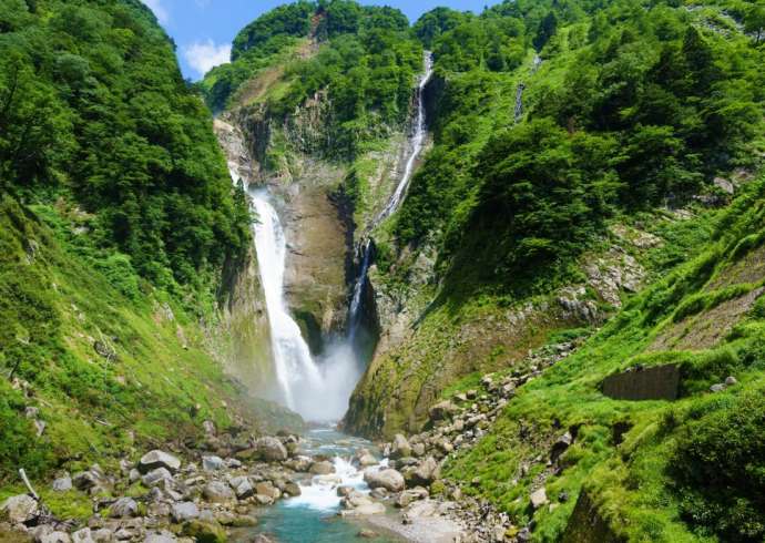 Shomyo Falls is one of Toyama Prefecture’s finest out-of-the-way spots! It is Japan’s tallest waterfall, with a drop of 350 meters. It has been designated a National Scenic Spot and Natural Monument, and chosen as one of Japan’s 100 best soundscapes.