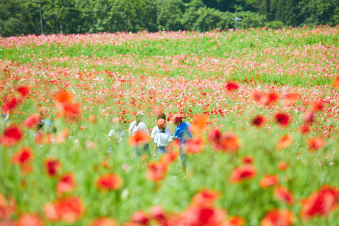 There is a spot in Saitama Prefecture where the blue sky and beautiful flowers create a scene that seems to come straight out of painting. In early summer, near Chichibu, a 4-hectar-large plateau located at an altitude of 500m is dyed in red with 12 million poppies. On fine days, the contrast between the red of the poppies and the clear blue sky is spectacular and the high altitude allows you to see mountains from other prefectures all around you.