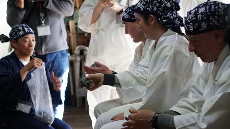 Amidst the lush greenery of the Chugoku Mountains, a timeless landscape unfolds, seemingly resisting the passage of time. Iron production in this region dates back to the late 6th century, and as the technology evolved, the steel produced here from the Edo period (1603–) to the early Meiji period (1868–) became the foundation of Japanese swords. At its peak, this area accounted for nearly 90% of Japan's steel production. Today, skilled swordsmiths continue to forge this steel into exquisite Japanese swords, preserving a centuries-old tradition alive.