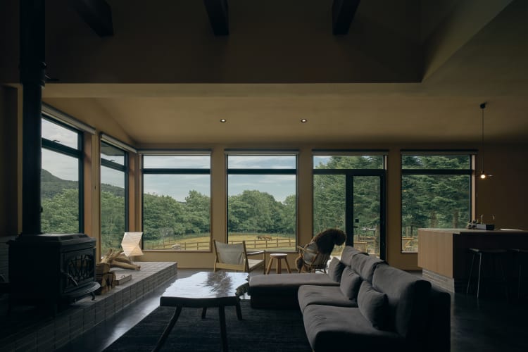 TAPKOP is based around the concept of living with nature as your neighbor. The spatial interior layout is accented by pieces of driftwood from the Sea of Okhotsk, as well as other natural objects collected from the town’s local forests. Large windows offer unfettered views of the trees and Mt. Optateshke off in the distance. On a clear night, enjoy the moon and stars shining brightly in the dark sky from the villa’s open deck, followed by an open-air hot bath in a repurposed miso barrel tall enough to stand in. Every element here is crafted to evoke the passage of time.