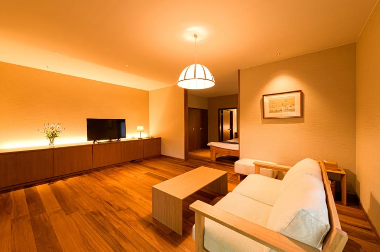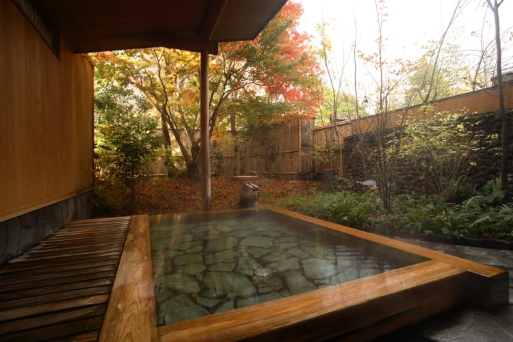Tamanoyu Hotel was used as a lodge for Zen monks in retreat until its conversion into a modern hotel in the 1970s. This current reincarnation is a luxury experience, but the property maintains the focus on offering sanctuary to weary souls. Its Japanese-style rooms are spread across two and a half acres of forest, with paths connecting them to the restaurant, cafe, front desk, and shop. Each room has a "tatami" sitting room and a private hot-spring bath with a cedar tub. The restaurant prepares a rotating, seasonal menu. There are several set menus to choose from for dinner, and both the restaurant and the cafe offer breakfast options. There is an onsite bar for an evening tipple, featuring many Japanese whiskeys, sake, wine, and beer.