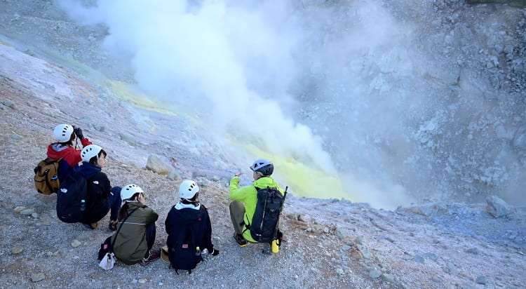 Whether you call it “Naked Mountain,” as do the Ainu, or “Sulfur Mountain,” as do the Japanese, the rocky terrain of Atosa-Nupuri (Mt. Io), an active volcano, packs some power. Take a three-hour trek to see fumaroles venting plumes of steam, lava domes, the remains of a mine, and the massive Kumaotoshi (“Bear Trap”) crater, believed to have been blown from an explosion four centuries ago. Along the way learn about the origins of the Kussharo caldera and the history of sulfur mining here. Development of this trekking route earned the town of Teshikaga “Green Destination” recognition for best practices in sustainable tourism; your visit will contribute to environmental conservation on the mountain.