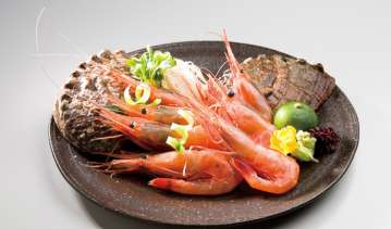 Deep-water shrimps in Fukui, or generally known as Amaebi ("Sweet Shrimp" in Japanese), well represents the delicious winter seafood in Fukui Prefecture along with other Fukui specialties. They have enchantingly glossy vermillion bodies. On eating them, slight smell of the sea, thick mellowness, and sweet flavor spread in your mouth. Every element of these different tastes has distinct flavor and texture. The catch of Amaebi is at its peak from September to October and March to June.