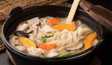 Hoto is a local cuisine made in the area centered on Yamanashi prefecture. Hoto noodle is a braised thick noodles and the soup comes with plenty of vegetables stewed in miso soup. The serving is known to be huge and the broth of the soup is thick and so tasteful. It is soul food of Yamanashi citizens and tourists. Tourists can find Hoto at anywhere of the sightseeing spots like Houtou Fudou in Yamanashi prefecture, you can enjoy a hearty meal of Hoto Noodle Soup while having the breathtaking view of Mt Fuji.