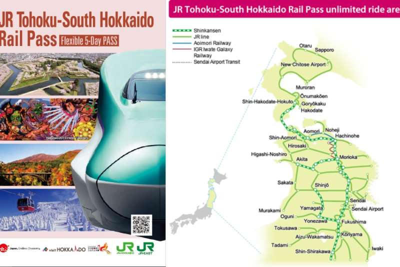 The difference between the JR Tohoku-South Hokkaido Rail Pass and the JR East Pass is the areas where they can be used. Besides the areas mentioned in the beginning of this story, the JR Tohoku-South Hokkaido Rail Pass also covers the southern area of Hokkaido, of which is not included in the JR East Pass.